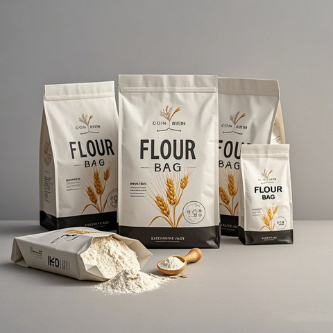 كيس آمن على الغذاء مقاوم للرطوبة محكم للوقوف على الأكياس مع شعار لخلط الكيك ومسحوق الدقيق والدقيق والخبز